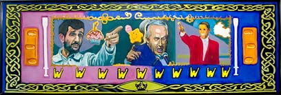 "בכל מיני אופנים. למשל בעבודה WINNERS יש את אובמה, ביבי נתניהו ואחמדינג'אד. הם מופיעים בפוזת