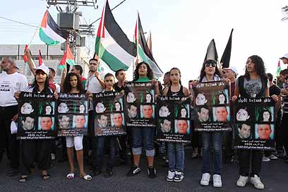 מחזיקים את תמונות ההרוגים (צילום: עידו ארז)
