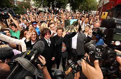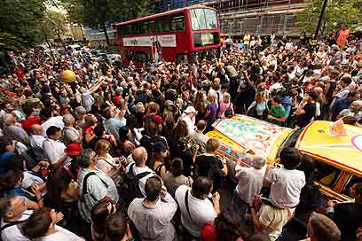 על מעבר החצייה המפורסם בעולם הצטופפו מאות מעריצי הביטלס, שהגיעו לחגוג 40 שנה ליציאת האלבום האגדי