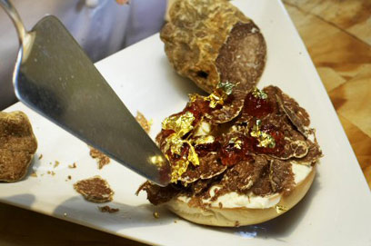 ביסים מצלצלים: אתם אולי רגילים לקנות את הבייגל שלכם בשנקל, אבל בניו-יורק, כמו שאתם יודעים המחירים קצת יותר יקרים. לפעמים אפילו הרבה יותר יקרים. כך למשל, בייגל מיוחד שנמכר לפני שנתיים במלון ווסטין בטיימס סקוור, עלה לא פחות מאלף דולר. למה כל כך הרבה? כי הוא כלל פרוסות של פטריות כמהין לבנות ופתיתי זהב אמיתי, וכדי להשקיט מעט את המצפון של מי שרכש לעצמו את החוויה הגסטרונומית היקרה הועברו חלק מההכנסות לקרן המעניקה מלגות לסטודנטים.