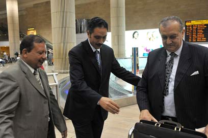 מימין: עוזר שר החוץ המצרי, מחמוד עבד אל-ג'וואד, הגיע אמש לנתב"ג בדרכו לפגישות ברשות הפלסטינית (צילום: דודו אזולאי)