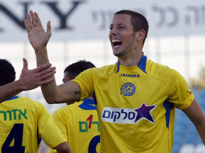 עומר פרץ בימין בצהוב. "רוצה להבקיע בכל משחק" (צילום: אלי אלגרט)