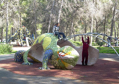 ילדים משחקים על פסל הלטאה (צילום: רוסלן סרגייב, קק"ל)