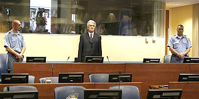 רדובאן קרדז'יץ' בבית המשפט בהאג (צילום ארכיון: AP)