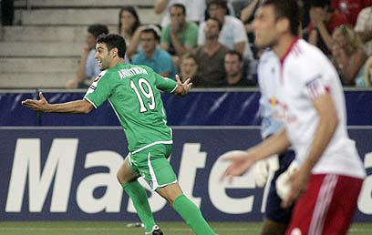 שלומי ארבייטמן חוגג את שער הניצחון (צילום: רויטרס)