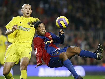 רונלדיניו שולח מספרת. בעיטה יפה (צילום: רויטרס)