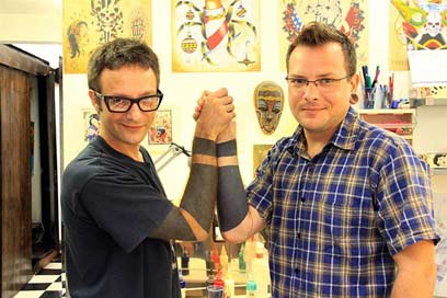 "מקעקע טוב הוא אמן, ויש מקעקעים שזו זכות לקבל מהם קעקוע", הוא מסביר. "תחשבי שמצייר גדול את יכולה לקנות רפרודוקציה, אבל בקעקוע, אמן גדול מצייר לך משהו אישי ומקורי, שנשאר איתך תמיד והולך איתך לכל מקום. אני משאיר לאנשים משהו שלי על העור. אז ברור שכמקעקע אני קצת לועס את אותם דברים, אבל זה לא מוזיקאי שכותב שיר ומשמיע אותו הרבה פעמים. כל וריאציה היא שונה ואישית".