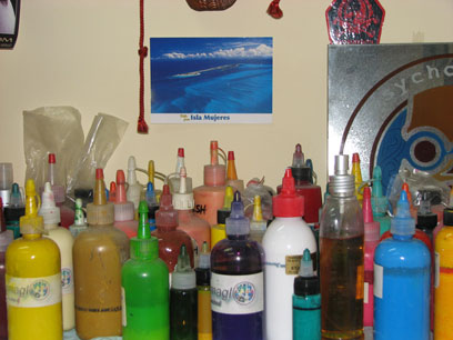 "זה כמו חליפה", מספר אלכס. "קונים רק פעם אחת וזהו. אנחנו הכנסנו לארץ את השטחים השחורים הגדולים, את הצורות הענקיות של מילוי שחור גדול, אבל אנחנו עושים הכול, במיוחד קעקועים מיוחדים. עכשיו אני עובד על קעקוע של בחורה עם ספינה על הראש וקעקוע של רובוט על גלגלים, שהראש שלו הוא טלוויזיה עולה באש; ביד אחת הוא מחזיק דיסק ובשנייה אייר בראש (מכשיר צביעה באמצעות לחץ אוויר - מ"ק).
