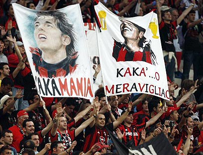 אוהדי מילאן סוגדים לקאקה. עלייה במכירת המנויים (צילום: רויטרס)