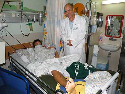 הנסיוב שהוזרק לגופו שיפר את המצב. אלמוג בביה"ח (צילום: אלי דדון)