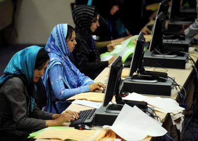עובדות במרכז ספירת הקולות בקאבול (צילום: AFP)