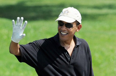אובמה משחק גולף במרתה'ס ויניארד, אתמול (צילום: AFP)