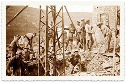 1. 21.3.1938, העלייה לחניתה. יעקב פולק במדי שוטר מיוחד עוזר בהקמת גדר היישוב, שהוקם במסגרת "חומה ומגדל".