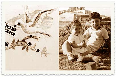 19 חיליק ואחותו בלהה, ילדיו של יעקב פולק, מצולמים באגרת ברכה לקראת ראש השנה, שהוכנה בסטודיו "פוטו אדם".