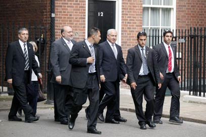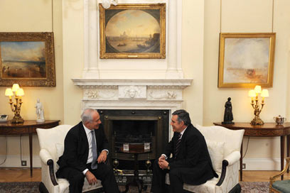 ראש הממשלה, בנימין נתניהו, נועד אחר הצהריים (יום ג') בלונדון עם ראש ממשלת בריטניה, גורדון בראון. נתניהו הוכנס למעון ראש הממשלה ברחוב דאונינג 10 ברגל, מהכניסה האחורית, על רקע הפגנה של מאות פרו-פלסטינים שהתייצבו בשערי הבית. זו פגישתו הראשונה עם בראון מאז התמנה לתפקיד.