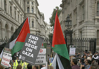 דגלי פלסטין מול רחוב דאונינג (צילום: רויטרס)