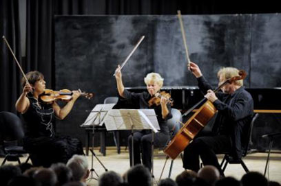 הצ'לן פרנץ הלמרסון, הויולנית מדלן קארוצו והכנרת מיכאלה מרטין