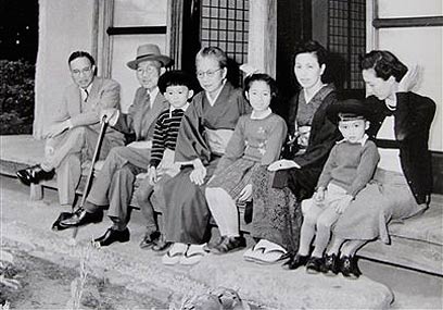 יוקיו הטויאמה, שלישי משמאל, ליד הסבא (צילום ארכיון: AP)