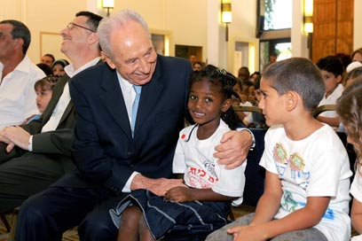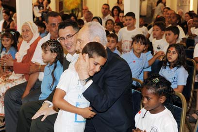 "אנו רוצים שתגדלו יחד ותלמדו טוב", פרס ושר החינוך עם אחד הילדים