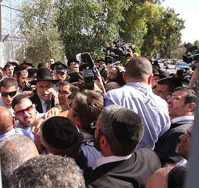 בניזרי בשערי בית הכלא, הבוקר (צילום: אבי מועלם)