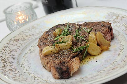 - מעבירים לצלחות הגשה מחוממות, מניחים על כל סטייק כמות יפה של קונפי שום ורוזמרין וזולפים מעל כמות נדיבה של שמן זית. מגישים מיד.