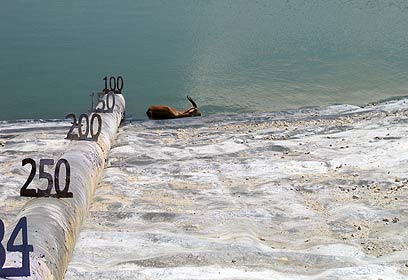 הצבי החליק למאגר המים, נקשר בקרניו וחולץ