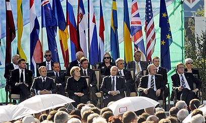"היום לפני 70 שנים, הפלישה הגרמנית לפולין פתחה את הפרק הטראגי ביותר בתולדות אירופה", אמר מרקל בטקס שנערך בבסיס ימי לשעבר שהיה זירת הקרב הראשון בסכסוך ב-1 בספטמבר 1939. היום לפני 70 שנה נפתחה אש מספינת קרב גרמנית לעבר מבצר פולני בים הבלטי. היתה זו יריית הפתיחה של מלחמה עקובה מדם, הנוראה ביותר שידעה האנושות. 60 מיליון בני אדם נהרגו במשך שש שנים וביניהם גם שישה מיליון יהודים שנספו בשואה.