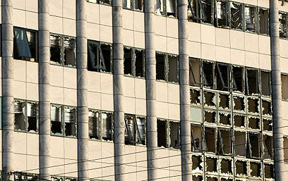נזק כבד נגרם לשמשות בניין הבורסה באתונה (צילום: רויטרס)