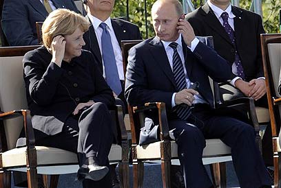 פוטין ומרקל. לא כל הסכם ביניהם הוא "ריבנטרופ-מולוטוב" (צילום: AP)