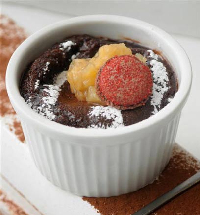 סופלה שוקולד עם קוביות תפוחים בקרמל