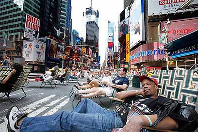 תושבים מתרווחים בטיימס סקוור. ארכיון (צילום: AP)