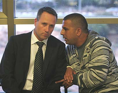 וקנין ופרקליטו שרון נהרי, היום בהארכת המעצר (צילום: אבי מועלם)