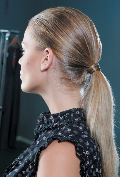 הסתירי את הגומיה באמצעות צמה דקה (בתמונה למעלה) או קווצת שיער (בתמונה למטה)