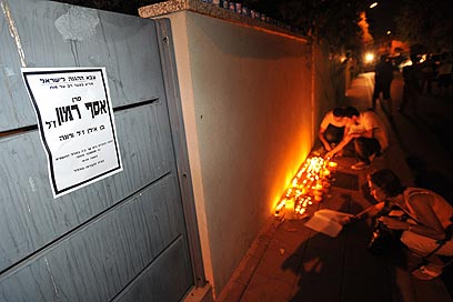 מדליקים נרות נשמה ליד בית המשפחה (צילום: דודו אזולאי)