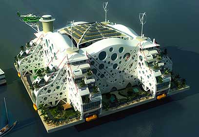 עיצוב של András Gyõrfi במסגרת תחרות של The Seasteading Institute (השימוש בהדמייה ברישיון CC)