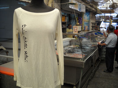 בכניסה ל"בורדו" תלויה חולצה שעליה כתוב באותיות קידוש מוזהבות "ברוך שעשני אשה". החולצה, כמו גם הסינר הגדול, תלויים אל מול דוכן הדגים הסמוך. לאפרת בן ארזה, השילוב של בוטיק מעוצב ומתוחכם לידו של דוכן דגים שוקק קונים נראה כדבר הטבעי ביותר.