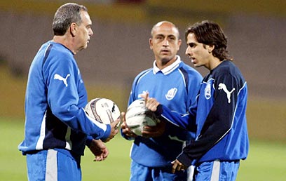 גרנט עם יוסי בניון ומשה סיני כשאימן את הנבחרת (צילום: ראובן שוורץ)