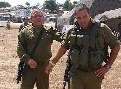 האלוף אייזנקוט עם מפקד האוגדה, תא"ל זמיר (צילום: אבישג שאר ישוב)