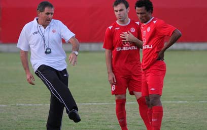 אניימה ושחקני הפועל ת"א באימון (צילום: עוז מועלם)