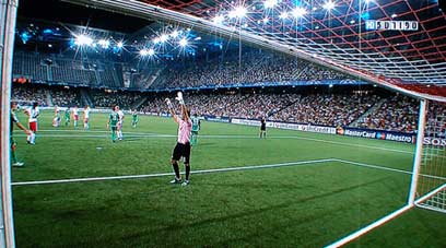 מכבי חיפה מול זלצבורג - שידור משחק כדורגל בערוץ ספורט 5HD, גם כאן, מנגנון החידוד מביא לתוצאות בורקות לעין ואפקט של תמונה חיה למדי.