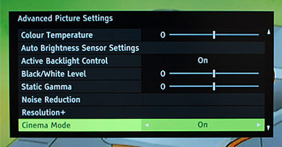 התפריט הבסיסי מאפשר לשנות פרמטרים כגון שינוי עוצמת תאורה אחורית, בהירות, ניגודיות, צבעים וחדות, אולם התפריט המעניין יותר הוא המתקדם, שמציע למשתמש שליטה על ששה צבעי יסוד, טמפרטורת צבע, רמות שחור / לבן, שינוי גאמה ב- 15 ערכים לכל צד, ניקוי רעשים בתמונה, הפעלת מצב Cinema, מעבר למצב Expert שמאפשר שליטה נוספת על צביעה והפעלת מצב Resolution+ עליו נסביר מאוחר יותר.
