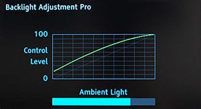 כאשר תאורת החדר חזקה, התוצאה לעין על המסך טובה מאוד, כאשר התאורה יורדת, כמעט לחשיכה גמורה, גם תאורה המסך דועכת בהדרגה, כאשר, ניכר כי מעבר התמונה מעדיף תמונה חשוכה מעט, עם שחורים עמוקים יותר ומראה שנוטה לצד הקולנועי, על חשבון הקרבה מסויימת בפרטים שנמצאים בשחור; מי שמעדיף תמונה במראה בהיר או מואר יותר בחושך, יצטרך לעבור לאחד ממצבי התמונה האחרים.