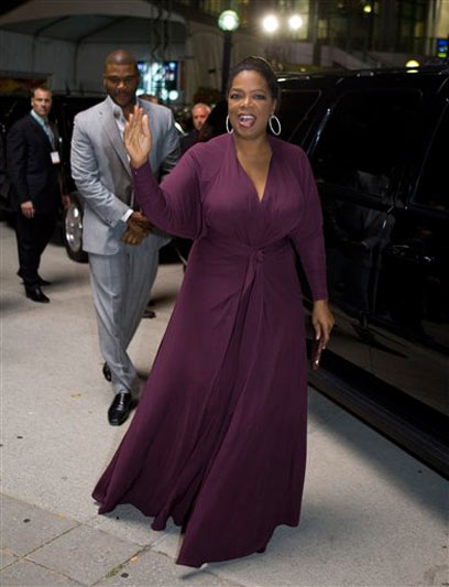 האפיפיורית אופרה ווינפרי, שתמיד יודעת איך לקדם כל עכברוש מקומי שמוציא ספר בישול לאנשים ששונאים לבשל, לא יודעת לבחור לעצמה בגדים. בשביל אחת הנשים העשירות בעולם זו פשוט קמצנות לא להוציא כמה מעות על סטייליסטית. ואם יש לך אחת כזו – תפטרי אותה מיד! את אישה גדולה, מכל הבחינות, וזה בסדר גמור. אבל למה ליצור לעצמך מראה עוד יותר גדול? למה לבחור שמלה שרק מבליטה את מה שאת אוספת מתחת לזרועות? הצלחת יפה מאוד עם גזרת הגוף, אבל הזרועות, אוי הזרועות. קחי את עצמך ואת השלום שלך, וכנסי כבר פנימה.