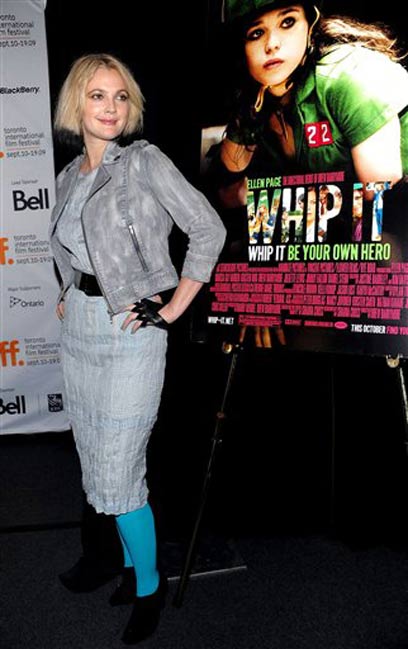 את דרו ברימור פגשה המעצב(נ)ת כמה פעמים במהלך השבוע, ולפחות בפעמיים מתוכן נשמטה לה הלסת. בפעם הראשונה זה ארע כשברימור לבשה שמלת קימוט כחלחלה, ג'קט ג'ינס, כפפות עור חסרות אצבע והתאימה את הלק על האצבעות (ראו תמונה קטנה) לגרביונים סטייל מאה שערים. השיער, אם תשימו לב היטב, לא קוצץ אלא נצבע בחלקו התחתון. אין ספק שהסרט שביימה, "whip it", נתן את אותותיו, אבל אין זה אומר שצריך להתלבש בחוסר טעם כזה. בשנות ה-60, ה-70 ואפילו ה-80 היה בזיק של טעם טוב. קטן, אבל היה. ברימור לא מצליחה להיות מיוחדת כאן, אלא סתם אחת שלא ממש יודעת להתאים את הבגדים. וזה לא נגמר כאן.