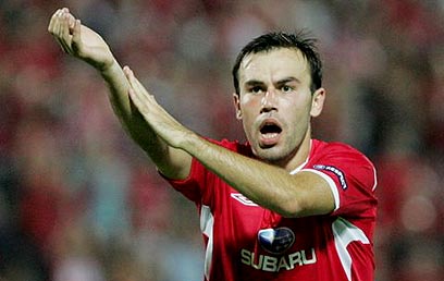 סמאראס חוגג את כיבוש השער הראשון בבלומפילד (אלי אלגרט)