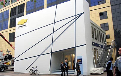 דוכן שברולט בפרנקפורט. עדות לתעשייה במשבר (צילום: רועי צוקרמן)