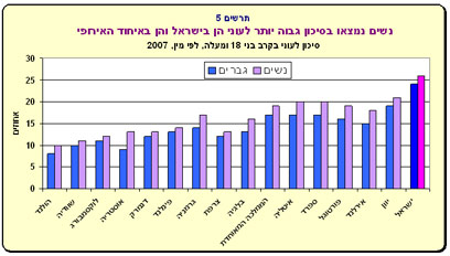 הדו"ח ששמו "פני החברה: מדדים אובייקטיביים והסובייקטיביים של עוני והדרה חברתית", מתמקד גם בפערים בין גברים ונשים בישראל. הדו"ח עוסק בשמונה תחומים המספקים תמונה של פני החברה בישראל מהיבטים שונים: מצוקה חברתית, כלכלית ותעסוקתית, מדדי עוני והדרה חברתית (בהשוואה למדינות האיחוד האירופי), רווחה, חינוך והשכלה, בריאות, תחבורה (כולל תאונות דרכים), חוק וסדר ואיכות הסביבה.
