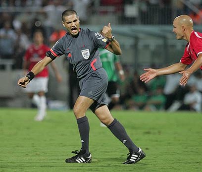 ווצ'יצ'ביץ' גוער במנשה משיח בבלומפילד (צילום: אלי אלגרט)