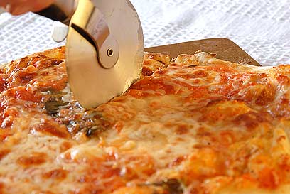 פיצה עם מוצרלה מחלב בופאלו, עגבניות, בזיליקום טרי ושמן זית