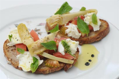 קרוסטיני עם ארטישוק, מוצרלה ועגבניות